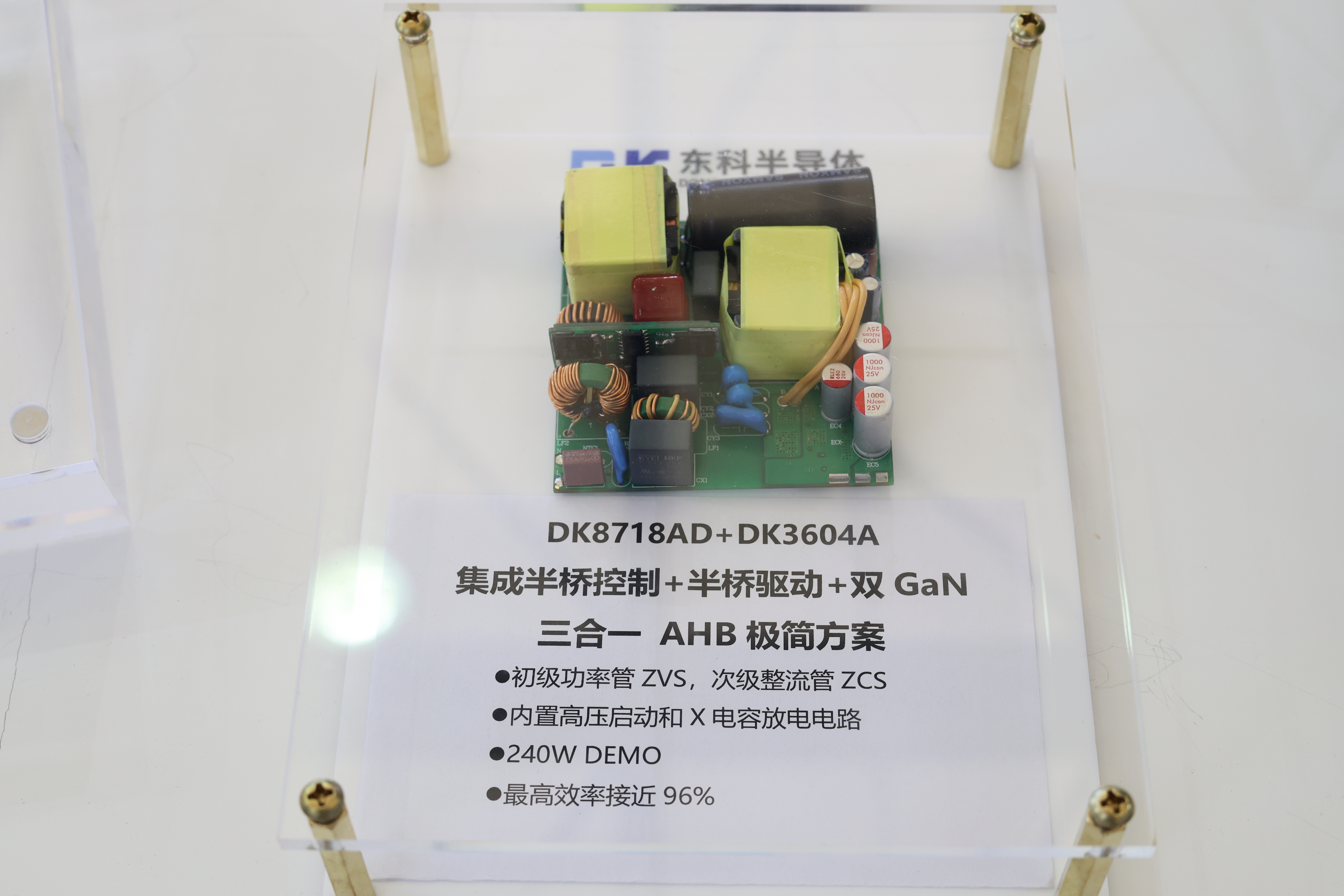 此次重磅展出了東科全新All-in-One全合封氮化鎵AC-DC電源管理芯片(不對稱半橋系列/有源箝位反激系列)。作為市面唯一的All-in-One全合封不對稱半橋解決方案DK87XXAD,有源箝位反激解決方案DK86XXAD。芯片采用三合一設計,單芯片集成AHB/ACF控制+半橋驅動+半橋GAN器件,實現(xiàn)了優(yōu)異的總線控制功能,提供卓越的性能和效率。