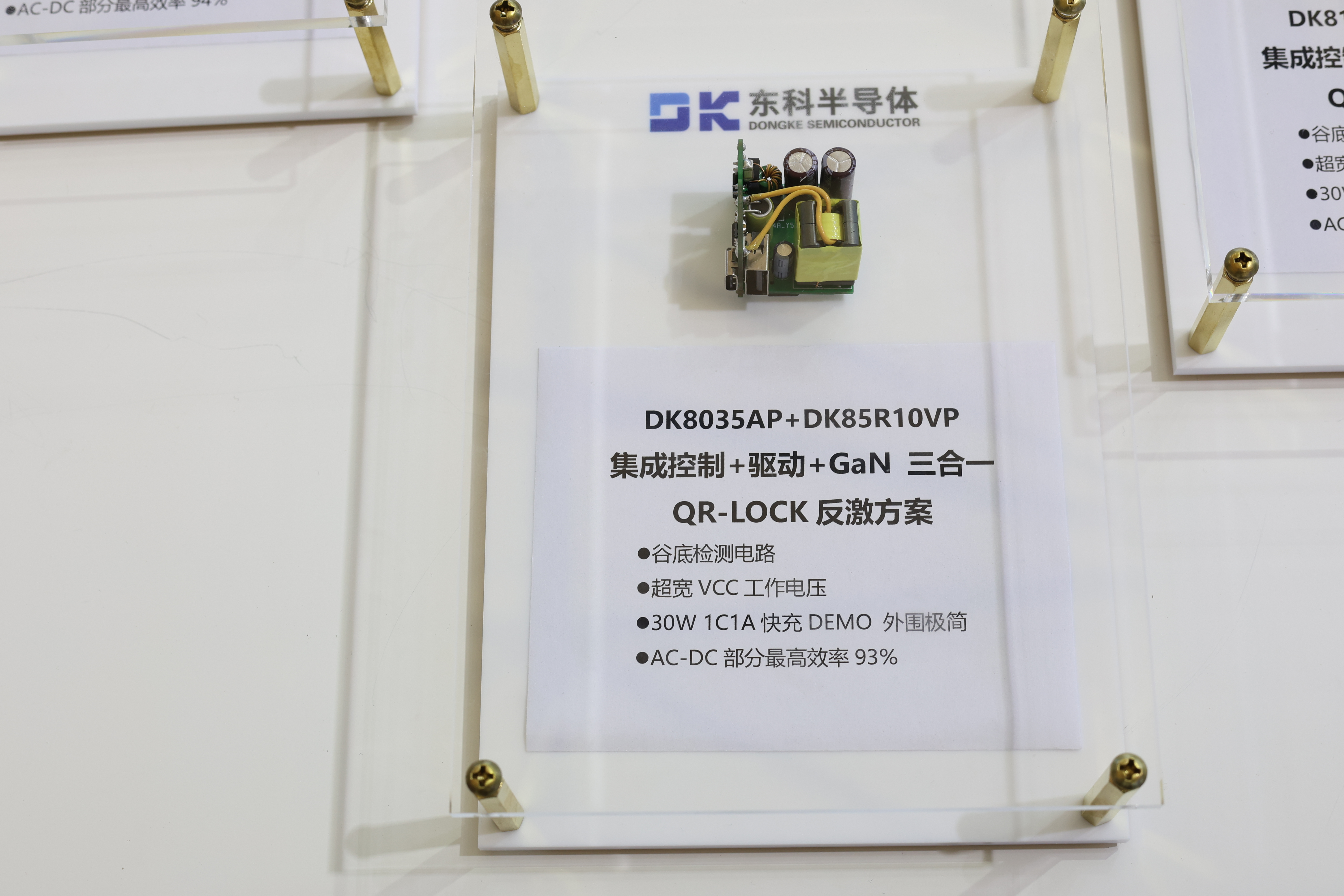 在氮化鎵AC-DC電源管理芯片領域,東科還帶來了全合封QR-LOCK AC-DC 電源管理芯片DK0XXG/DK80XXAP系列。產(chǎn)品輸出功率覆蓋12-75W。支持250KHz開關頻率,待機功耗低于50mW,內(nèi)置高低壓輸入功率補償電路。